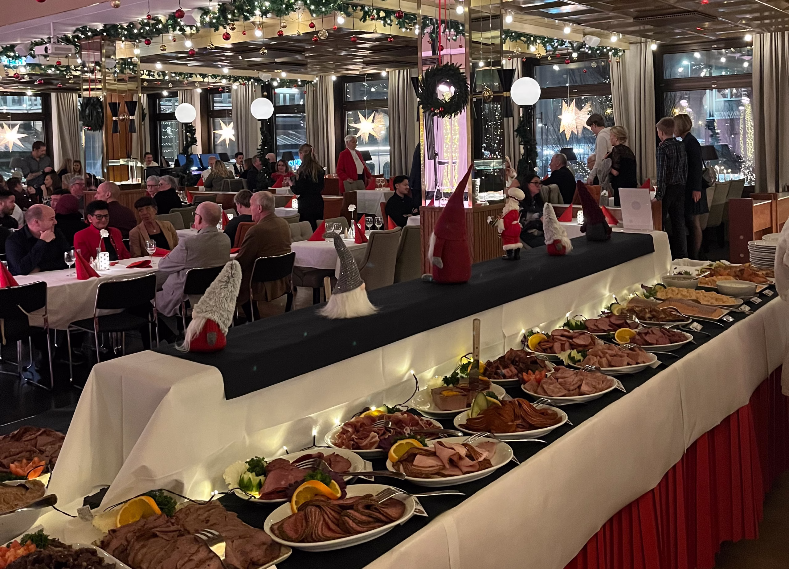 I Gyllene salen bjuder vi på ett klassiskt julbord i en lugn och stämningsfull miljö – perfekt för dig som vill njuta av god mat och trevligt sällskap. Kvällen bjuder på traditionella kalla och varma rätter, lagade med omtanke och julkänsla.